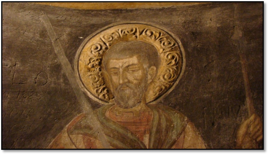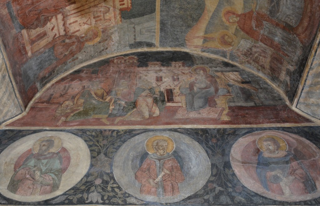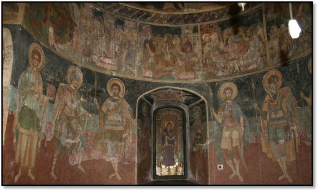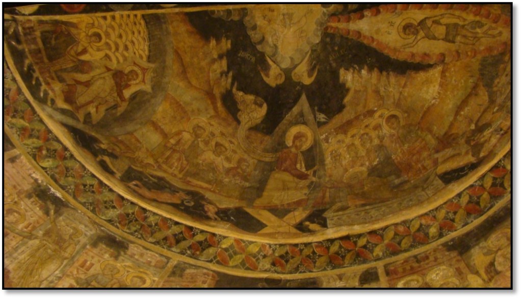 “Aureolele sfinţilor militari de pe pereţii inferiori – în relief.”