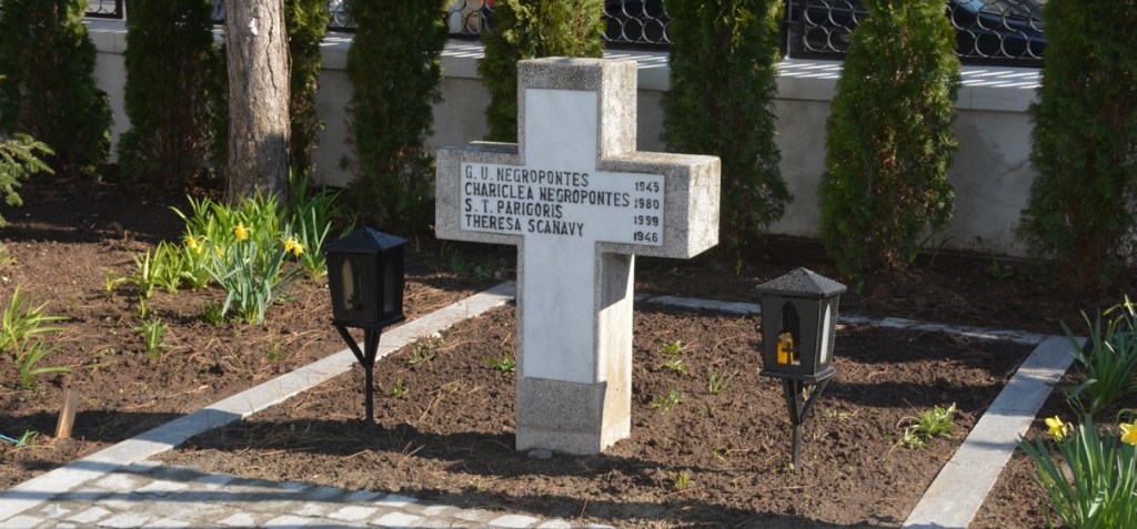 În curte găsim mormântul familiei Negropontes, cu următoarea inscripție: G.U. Negropontes – 1945, Theresa Scanavy – 1946, Charicleea Negropontes – 1980, S.T. Parigoris – 1999.