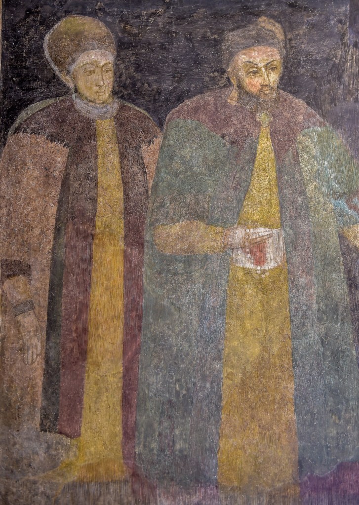 Pe peretele din stânga pronaosului ar putea fi marele vornic Ioniță Florescu împreună cu soția sa Anica Ghica, restauratorii bisericii din a doua jumătate a secolului al XVIII-lea.