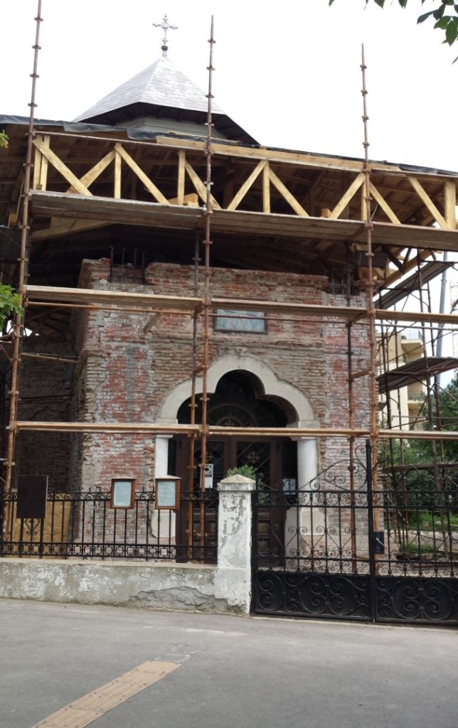Din pisania actuală a bisericii, încadrată în chenar de piatră cioplită, reținem că: “Reconstruirea acestei biserici cu hramul de “Sfânta Sofie” a început în anul 1926 în glorioasele zile ale marelui Rege al României Mari Ferdinad I, Patriarch fiind I.P.S. Miron Cristea, cu cheltuiala și stăruința Societății S.N.I.C., prezident fiind generalul C. Coandă, iar viceprezidenți inginer A. I. Bădescu și G.U. Negropontes și cu binevoitorul concurs tehnic al domnului arhitect Smărăndescu”.